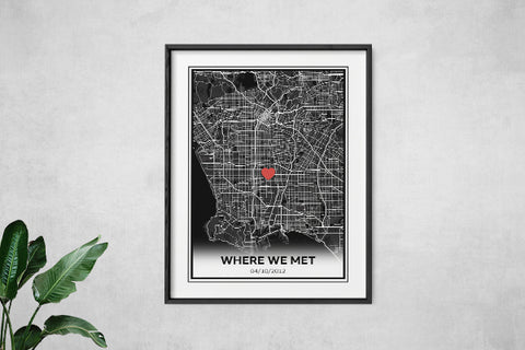 A Where We Met Map is exactly what it says - a map art print that illustrates the place where you met a loved one or significant other. So whether you ran into each other in the middle of your hometown or met them when you were on vacation, you can turn that special place into a print the two of you can cherish forever.
