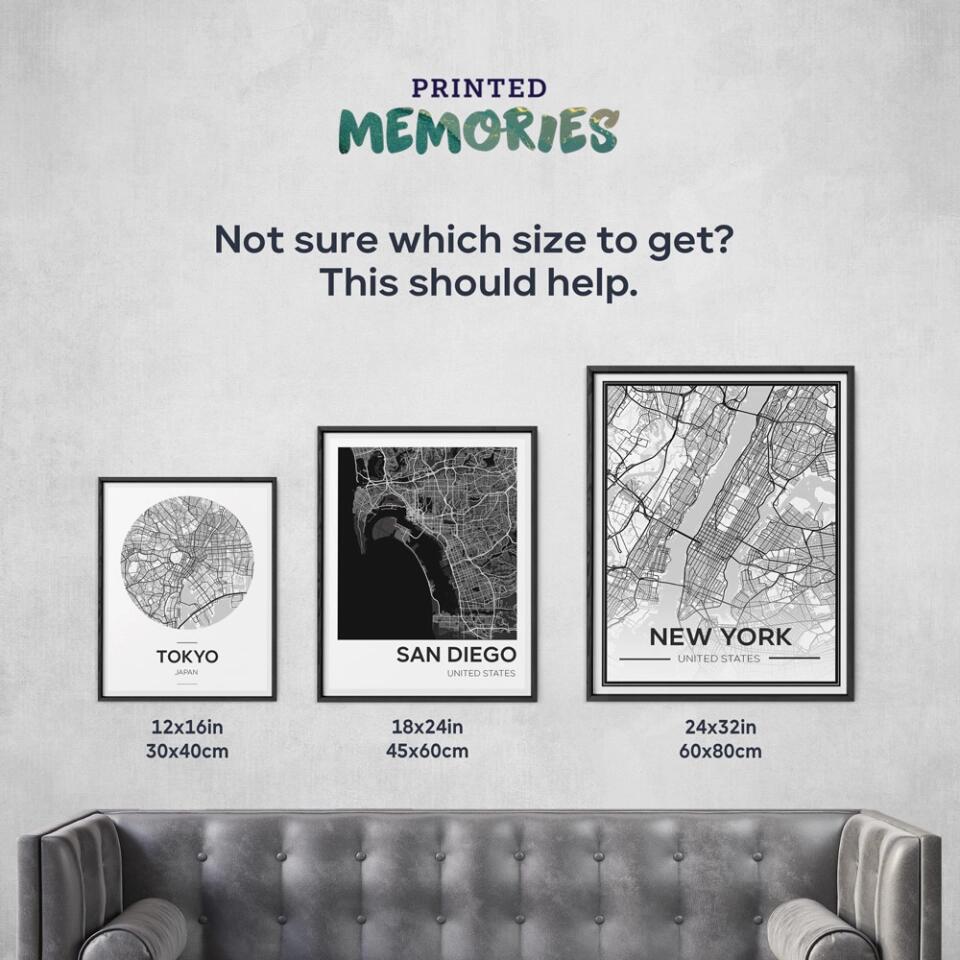 That's how we plant one tree for every item we sell, including photo books, custom map prints, and canvas prints. We also offer local printing and shipping. This way, you'll get your engagement map print gift much quicker! Shop with us absolutely guilt-free, and know that you're doing your bit for the environment.