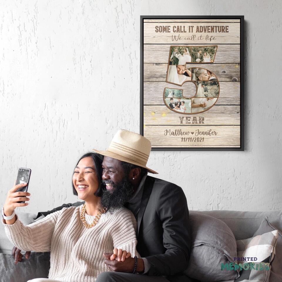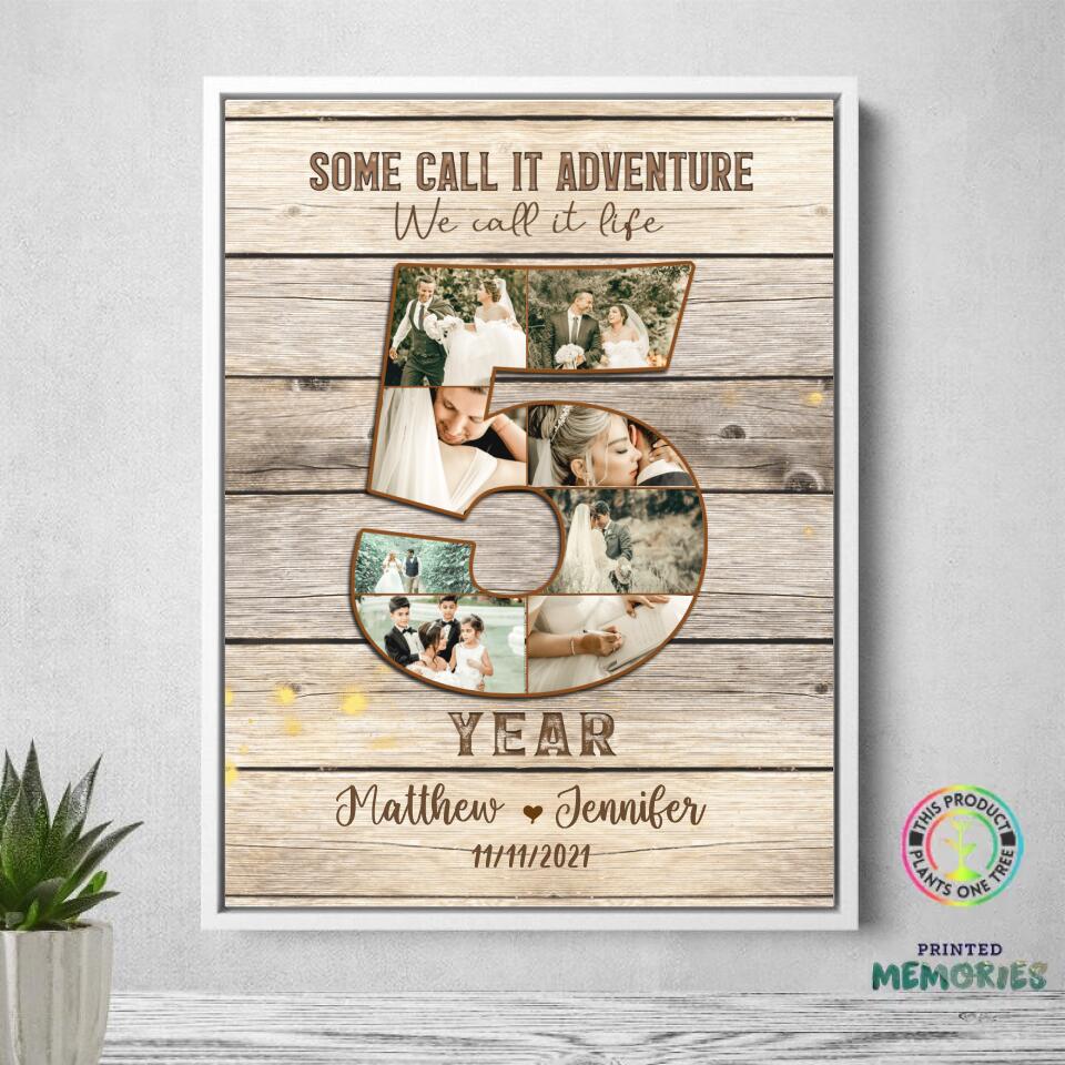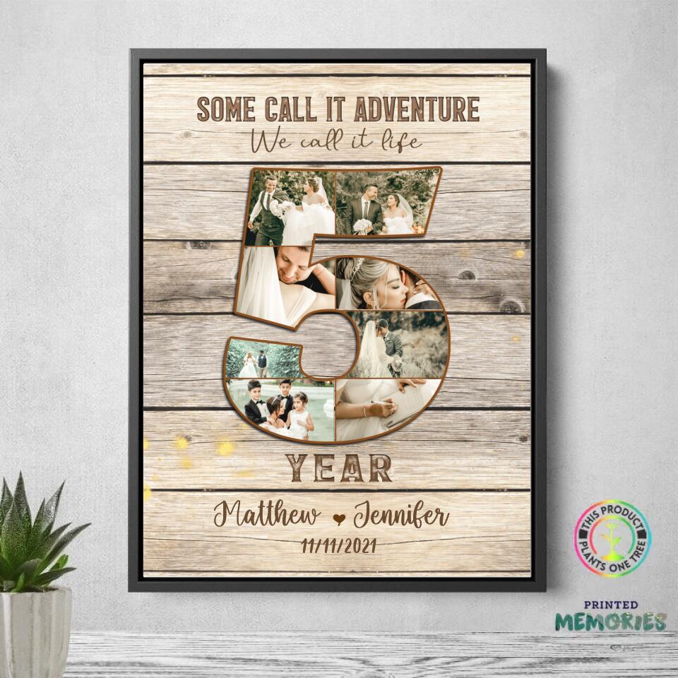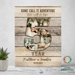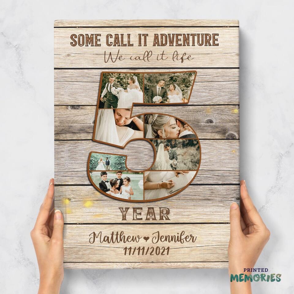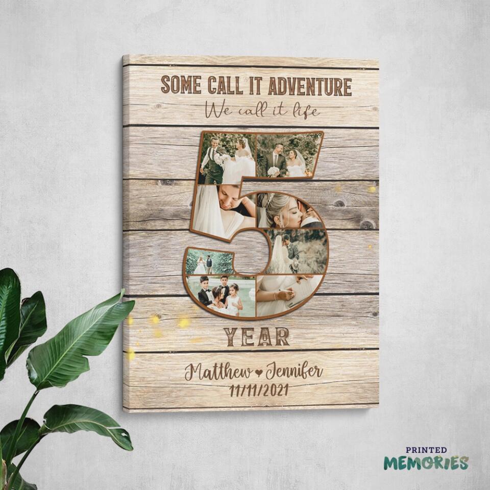 This unique canvas print is perfect for any couple celebrating half a decade of marriage. Upload your favorite photos and share your own love story, or honor the marriage of any happy couple you know..