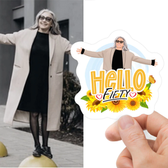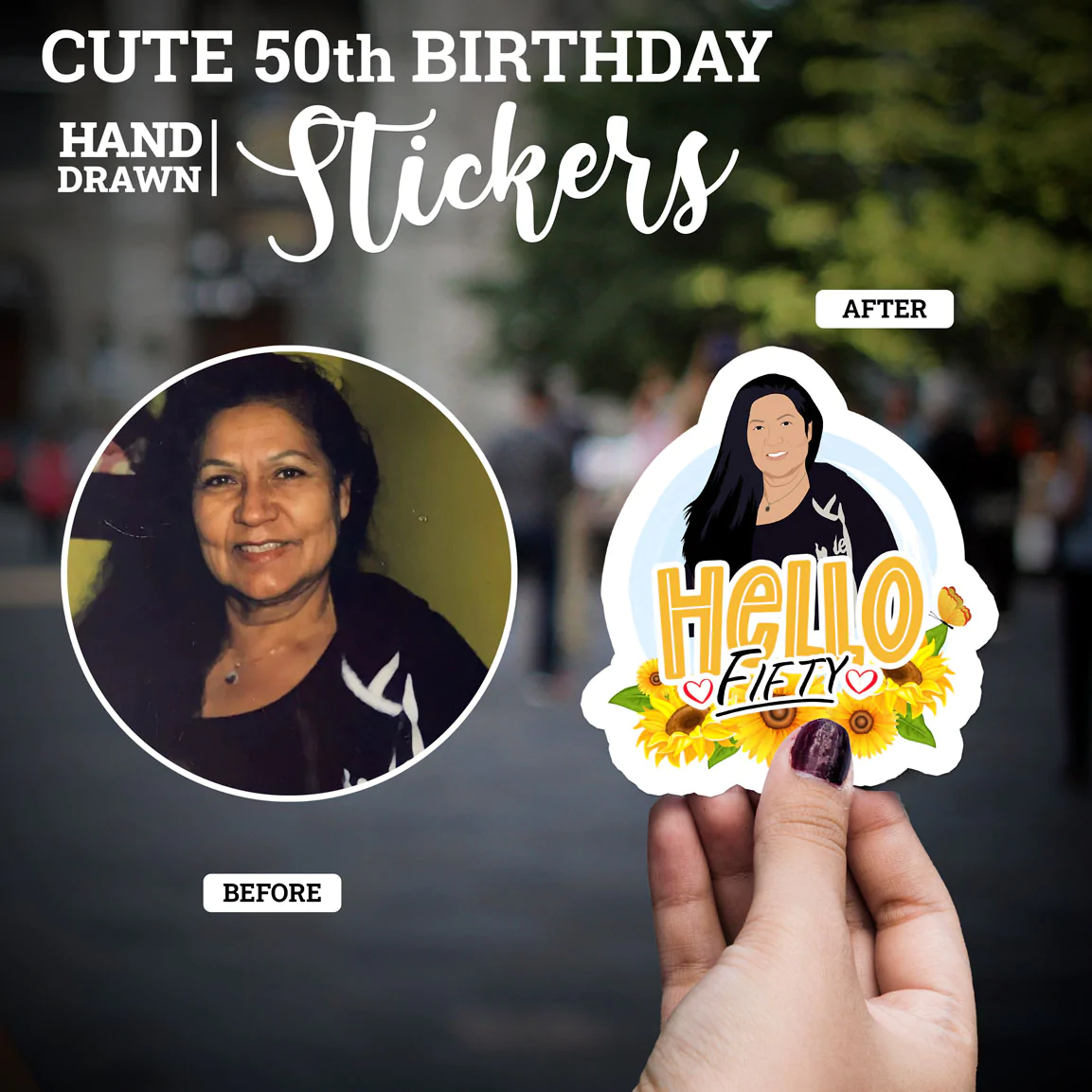Our professional artists turn your favorite photo of her into unique 50th birthday stickers.