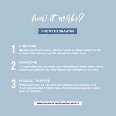 Every order is sent for approval. We will provide unlimited revisions of your drawing to make sure you are happy with the result.