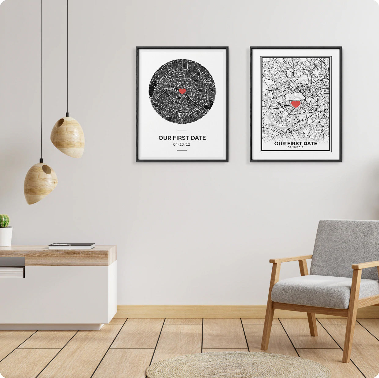 Just like your love story, your First Date map should last for years to come. We print on thick paper with premium inks to ensure your new wall art will stand the test of time. So, even after you've had your 500th date, this special keepsake will remain in perfect condition—an everlasting reminder of your love.