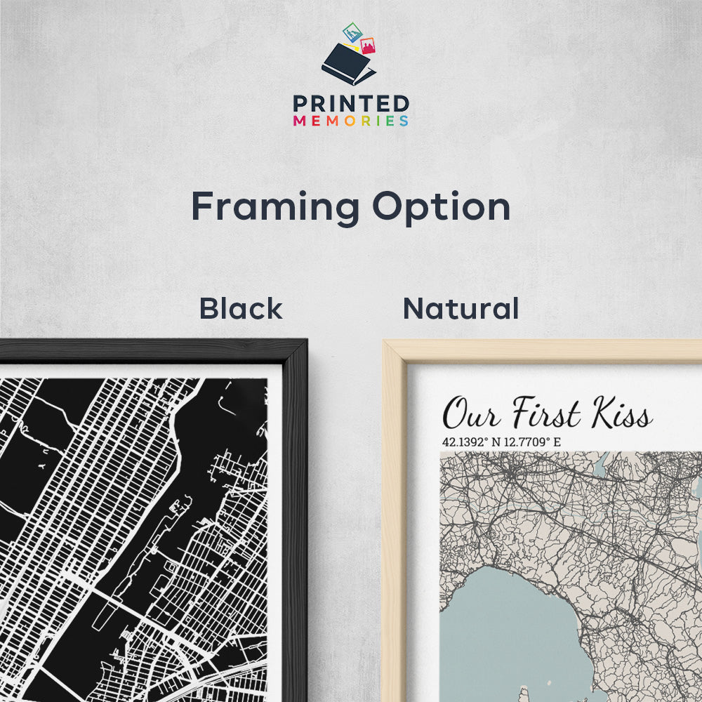 That's how we plant one tree for every item we sell, including photo books, custom map prints, and canvas prints. We also offer local printing and shipping. This way, you'll get your engagement map print gift much quicker! Shop with us absolutely guilt-free, and know that you're doing your bit for the environment.