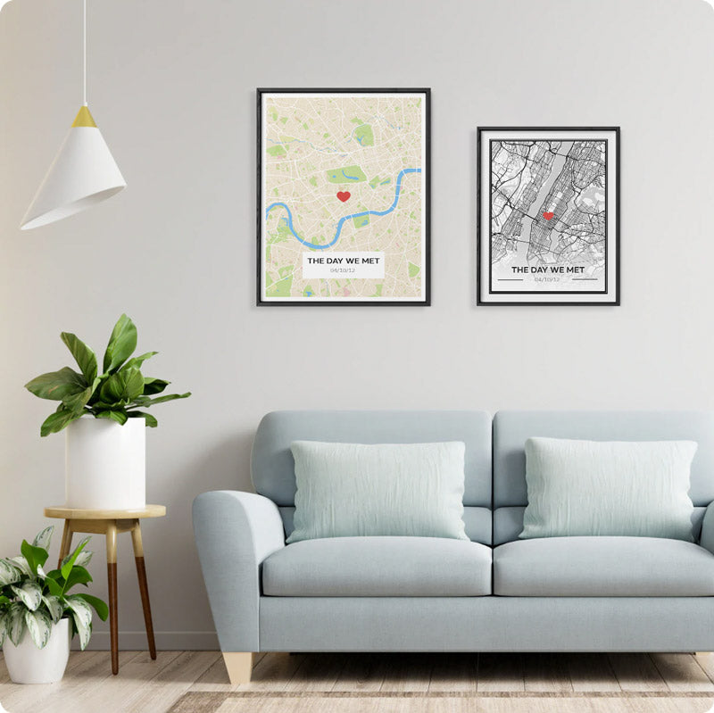 Quality matters. We print on thick paper with premium inks to ensure our maps stand the test of time. Relive special moments from your life by immortalizing them forever in a beautiful art print. Thanks to our high quality materials, the Day We Met Map makes a special keepsake to cherish forever.