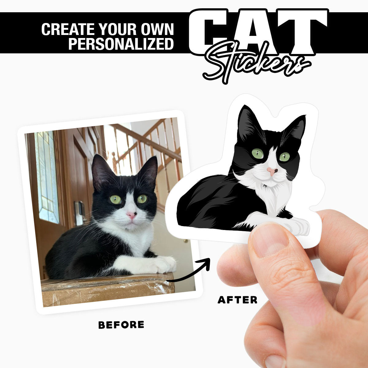 Our custom cat stickers are hand drawn by our team of skilled artists and personalized to your specifications and special occasion.