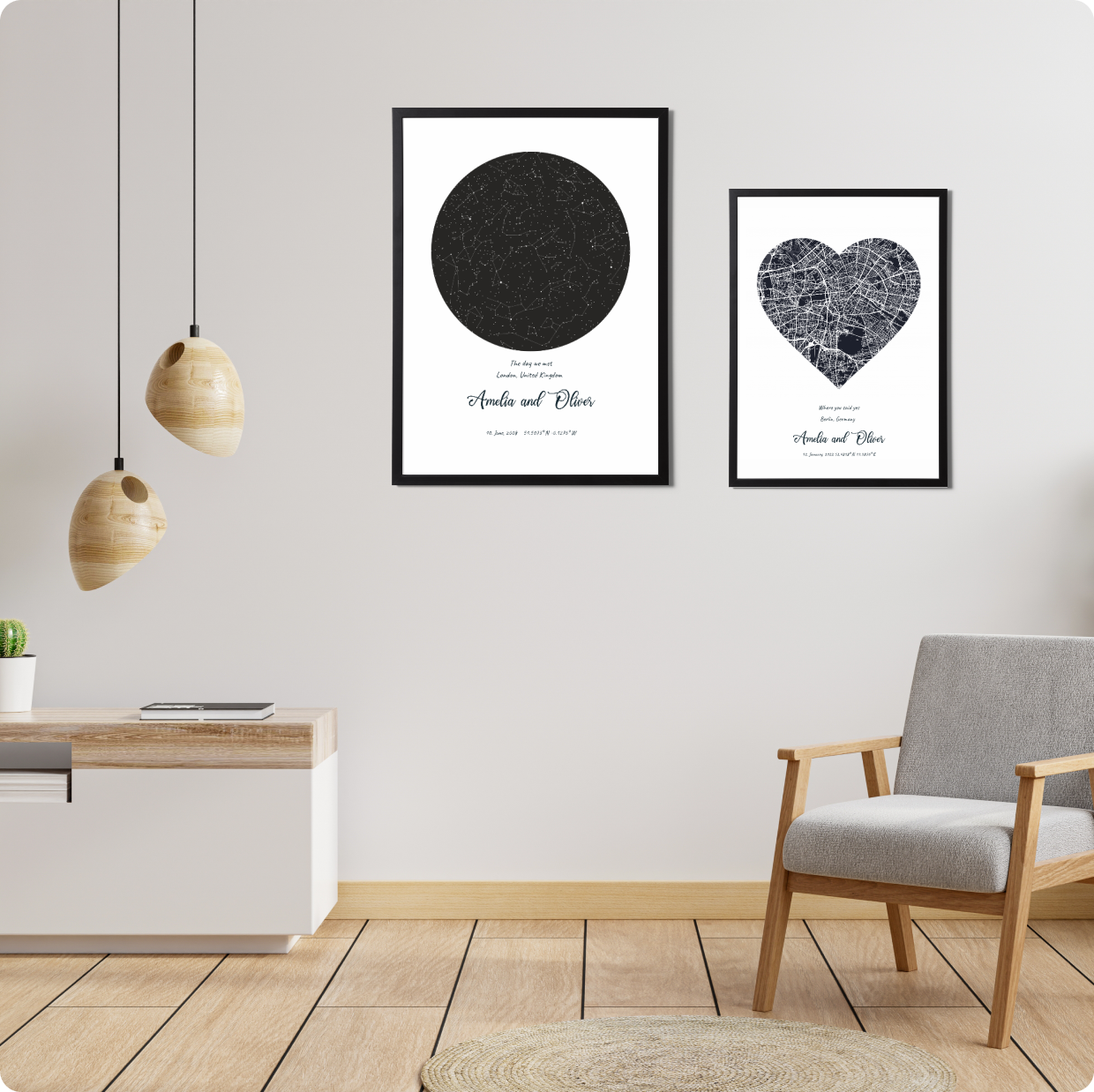 Whether it’s when you shared your first kiss with your partner, your first child came into the world, or the day you met your best friend, our star maps capture exactly how the stars were aligned on that special date..