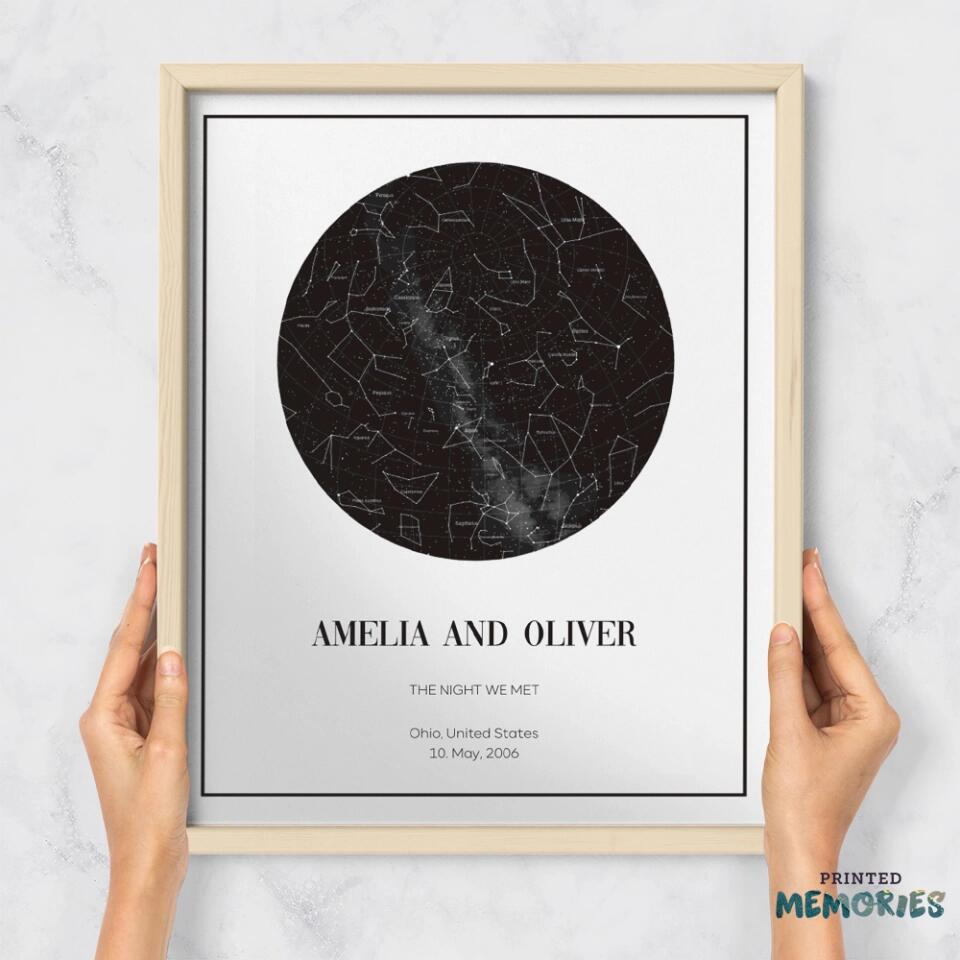 A custom star map is designed to show the exact location of constellations on a specific date or a special occasion. Personalized star maps are the perfect way to immortalize any memorable occasion. Each star map gift features a beautiful print of the night sky that is completely accurate. So if you're looking for a print reflecting the moment you met your significant other, a star map will show exactly how the stars looked that night.